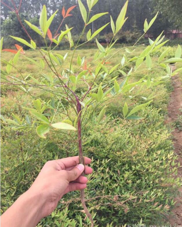 南天竹是北京一般多彩落葉灌木,苗高100~250cm,樹葉青綠色,枝條灰褐色,生長的快,欣賞價值高。擁有耐寒,耐旱性,發芽強的特性,是道路綠化里主要的綠籬苗的一種,常常與花葉玉簪,沙地柏,苦楝樹,小葉黃楊等配合栽種。葉子晚秋紫紅帶綠,美化作用非常好,可以栽種到花壇、道路、小區雙邊美化。南天竹最新市場價格_報價
